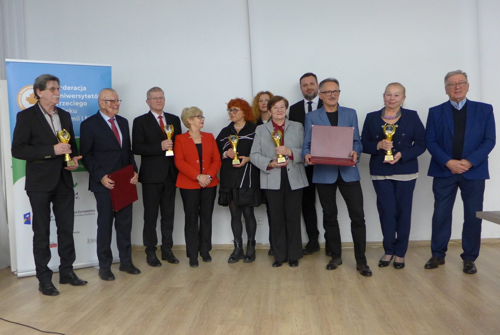 Spotkanie przedstawicieli UTW z naszego województwa podczas gali wręczenia statuetek w dniu 23 stycznia br. poza nami. Spotkanie poświęcone ocenie pracy Federacji za rok 2025 i perspektywy rozwoju w roku 2026 przedstawił prezes Federacji Ryszard Oklinski. W spotkaniu tym uczestniczyło 48 delegatów z 18 zarządów Uniwersytetów Trzeciego Wieku .zrzeszonych w federacji. Z wielką przyjemnością informujemy, że Statuetką „Perła Federacji” za wkład i rozwój działalności UTW uhonorowanych zostało 5 uniwersytetów .Są to: Uniwersytet Trzeciego Wieku w Lidzbarku, Akademia Trzeciego Wieku przy MOK w Olsztynie , Uniwersytet Trzeciego Wieku w Lidzbarku Warmińskim, Uniwersytet Trzeciego Wieku w Ostródzie i Jarocka Akademia Trzeciego Wieku w Olsztynie. Ponadto podziękowania w postaci „Graweru” w pięknej obwolucie , za szczególny wkład w działalność samej Federacji otrzymali: Andrzej Postój i Tadeusz Szczubiał. Spotkanie uświetniła wspaniałym występem p. Magdalena Kozakiewicz z olsztyńskiej filharmonii. Mieliśmy okazję także otrzymać pełną informację o złożonych projektach federacji ,które realizowane będą w tym roku. Nasze spotkanie zaszczycili swoją obecnością .Pełnomocnik ds. senioralnych i osób z niepełnosprawnościami- wojewody Warmii i Mazur p. Piotr Baczewski, przedstawiciel Urzędu Marszałkowskiego -biura ds. współpracy z organizacjami pozarządowymi p. Wioletta Karolak, Przewodnicząca Wojewódzkiej Rady Senioralnej p. Wiesława Przybysz, Przewodniczący oddziału olsztyńskiego Obywatelskiego Parlamentu Seniorów- p. Zenon Glanc. Spotkanie zakończyło się wspólnym obiadem w restauracji Villa Pallas.